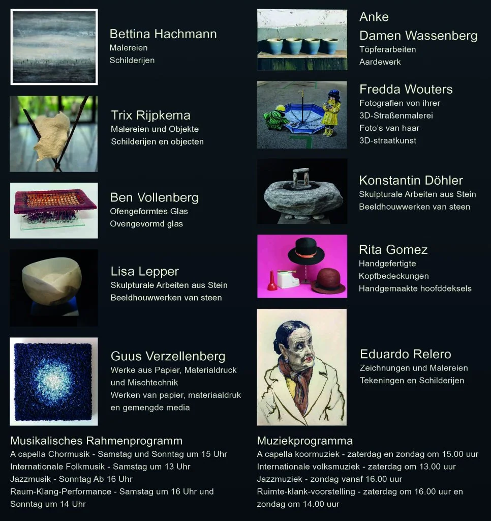 Met onze gezamenlijke tentoonstelling „Zon, Maan en Sterren“ willen we een grensoverschrijdende, open ontmoetingsruimte creëren, die juist in deze tijd van zorgwekkende politieke en mondiale problemen zo belangrijk is. De uitwisseling en verkenning van kunst inspireert, brengt vreugde en creëert een gevoel van verbondenheid.