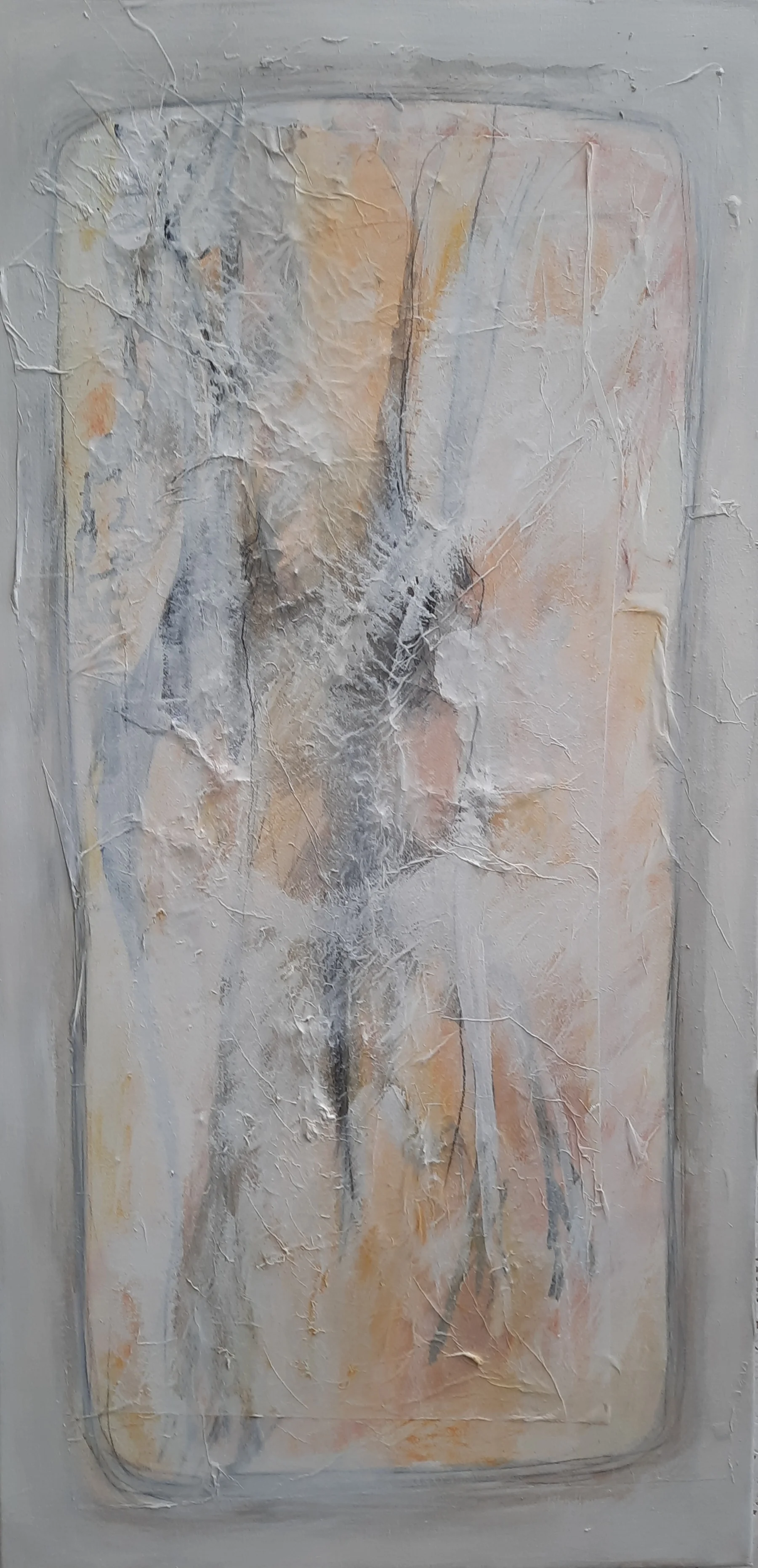 Laag over laag. Haar kunst komt voort uit de Scandinavische esthetiek, uit fascinatie voor imperfectie en uit de veelzijdige ervaringen in haar eigen leven. Door de gelaagde, delicate verflagen en het openen van het doek ontstaan werken die een glimp van het verborgene onthullen. Bettina creëert sferen die mensen raken en uitnodigen om innerlijke ruimtes te verkennen. Haar diepste overtuiging is dat de schoonheid van eenvoud en de acceptatie van imperfectie een helende werking hebben. Deze drijfveer vormt haar leven en haar kunst.