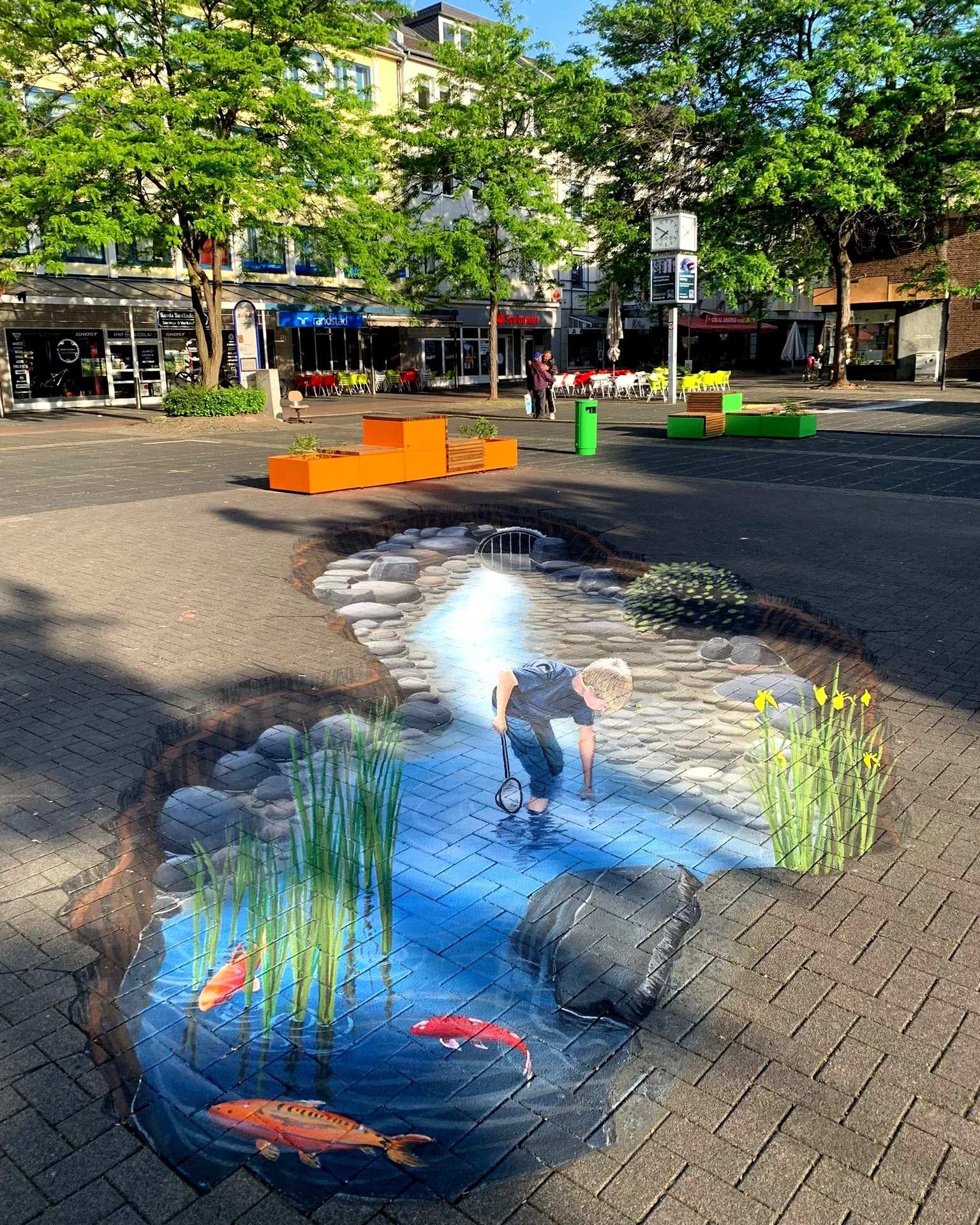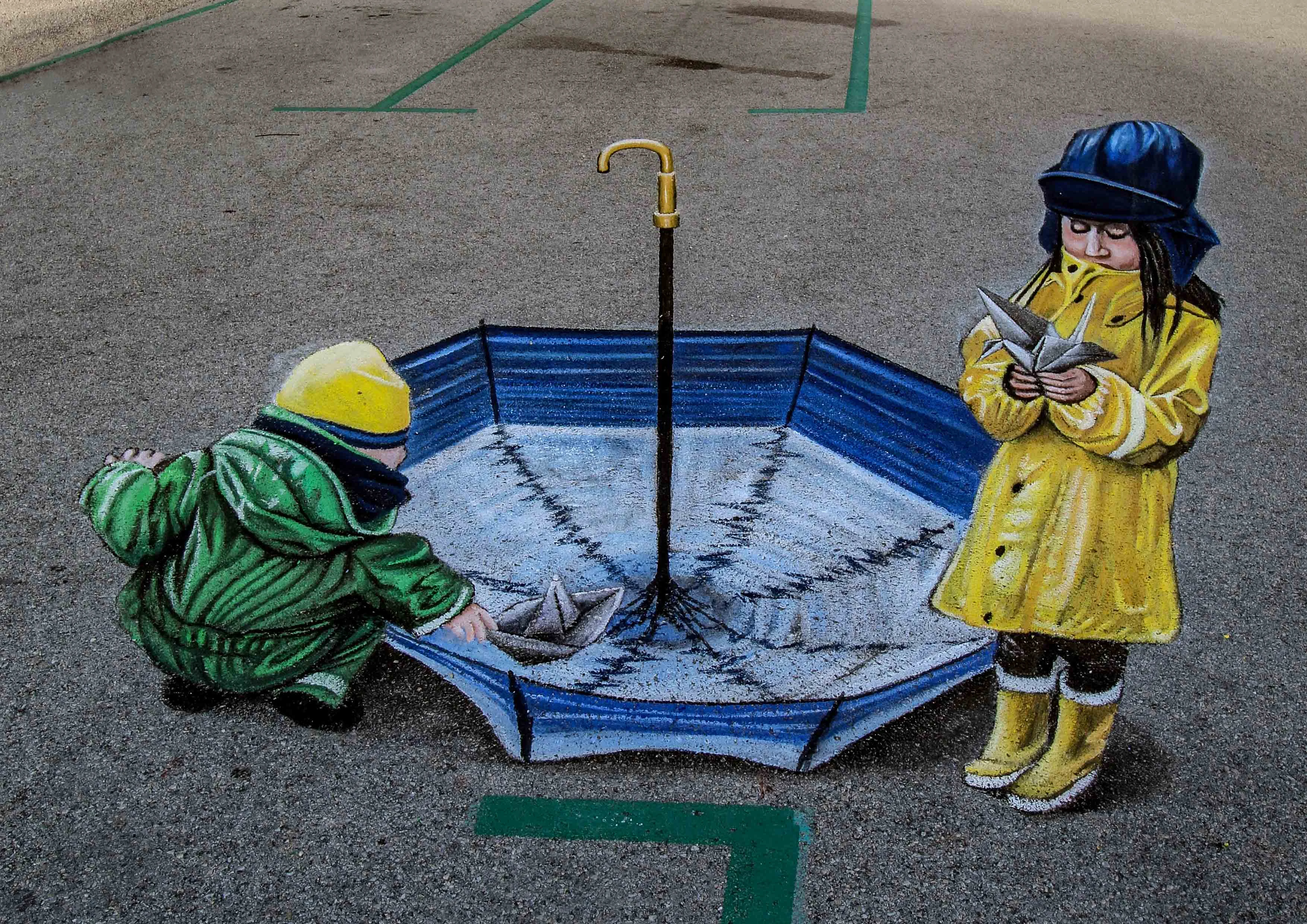 Fotografien ihrer 3D-Straßenmalerei – Foto’s van haar 3D-straatkunst