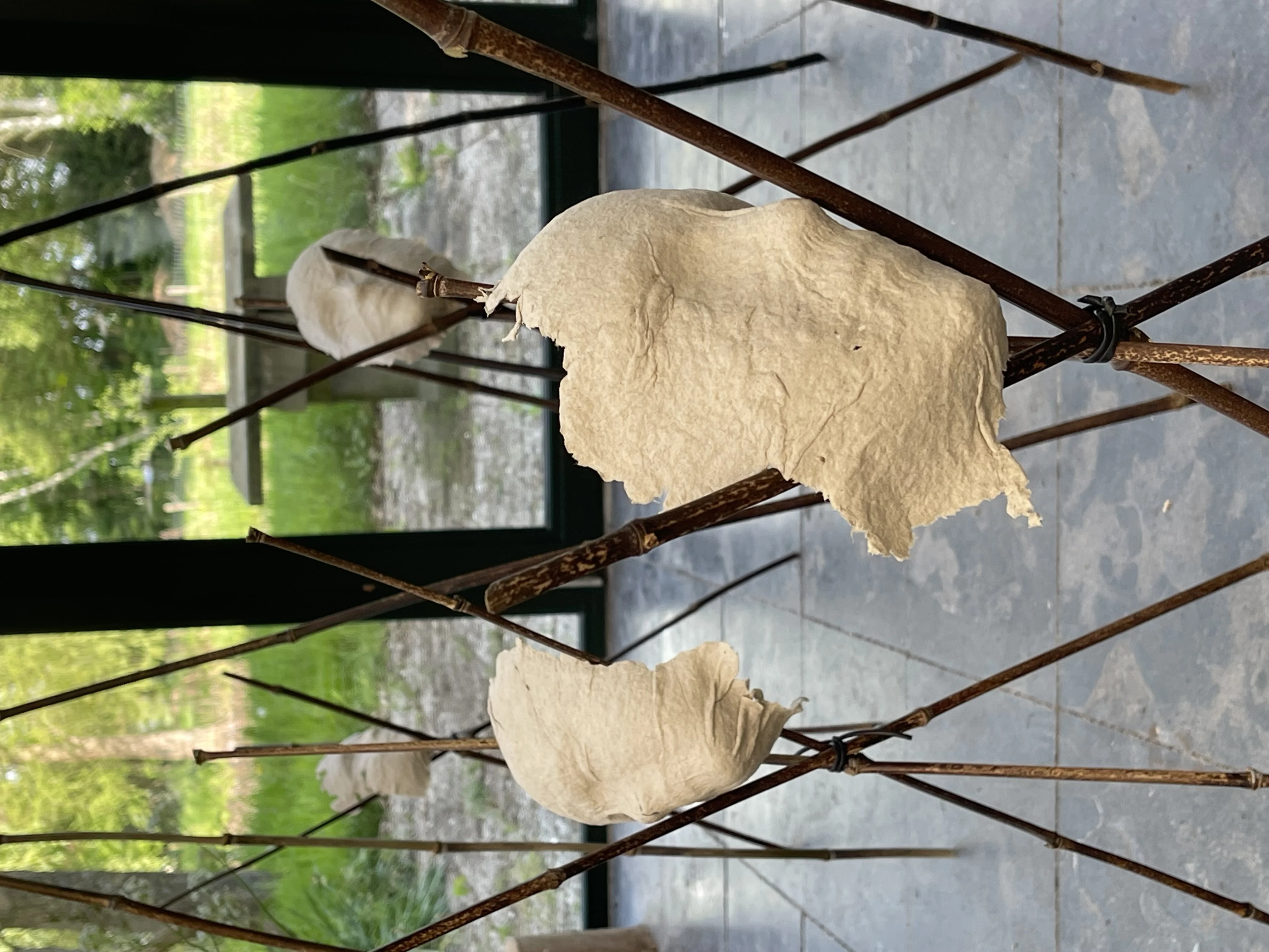 Mit verschiedenen Materialien (oft aus der Natur) und Techniken wie Zeichnen, Malen, Collagen und Drucken, schafft sie wiedererkennbare oder abstrakte Bilder, die gelegentlich auch dreidimensionale Arbeiten umfassen. Sie arbeitet gerne mit natürlichen Materialien wie Pflanzen- und Tierfasern und natürlichen Farbstoffen wie Walnussrindenfarbe.